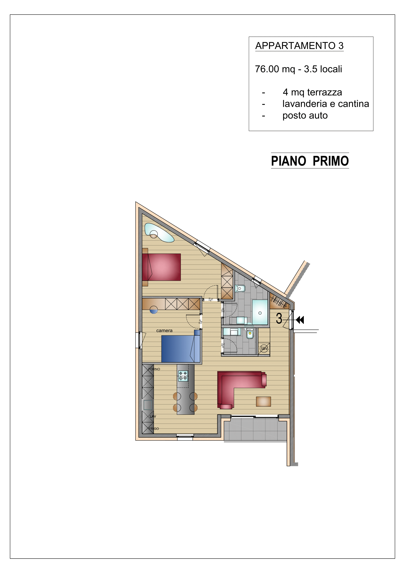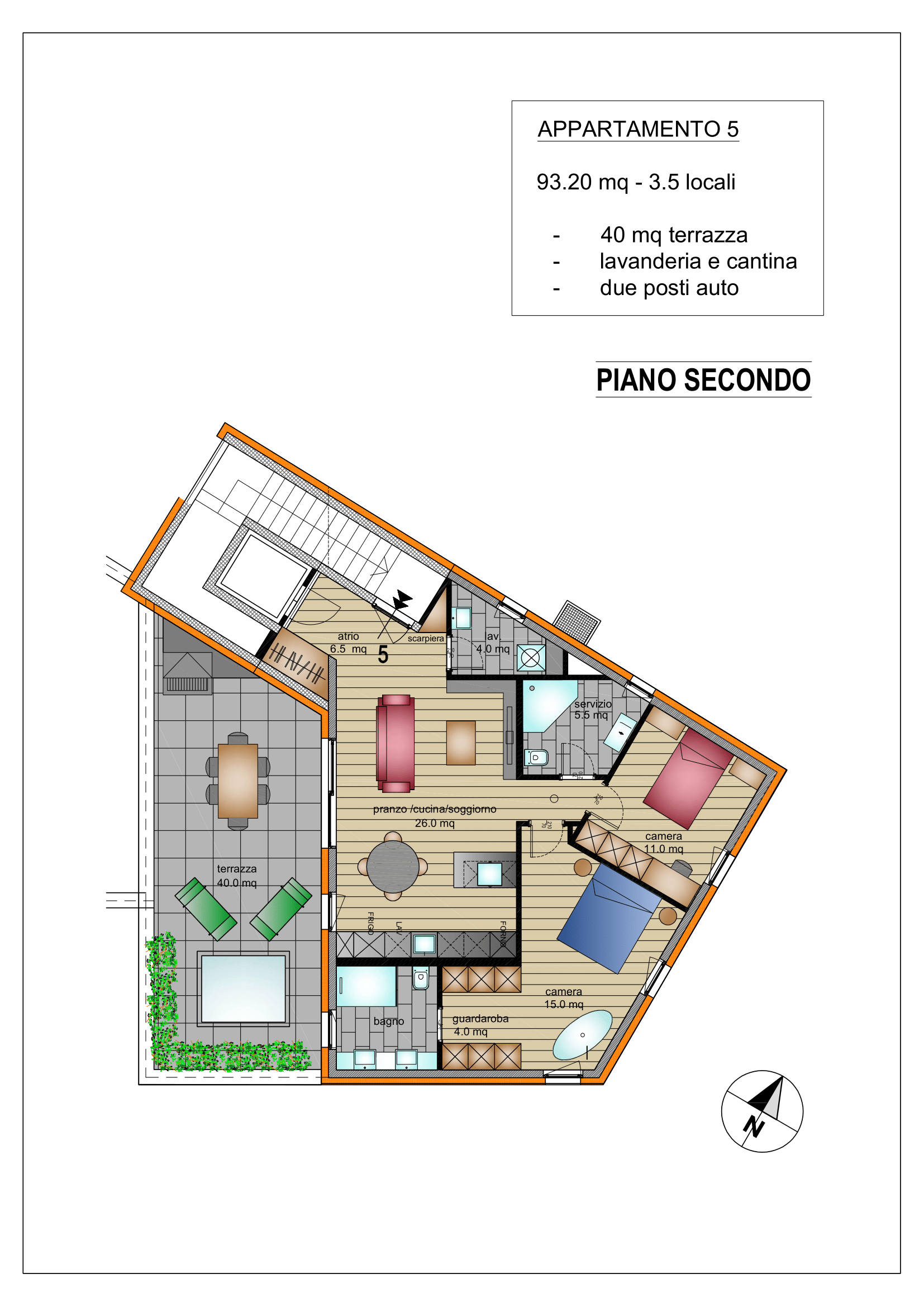 L'intervento prevede la realizzazione di un edificio di soli 5 appartamenti di diverse metrature. Proponiamo appartamenti di 3.5 locali e di 4.5 locali, ciascuno con i propri spazi esterni che si differenziano in base alla tipologia dell'abitazione.